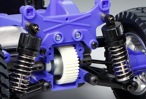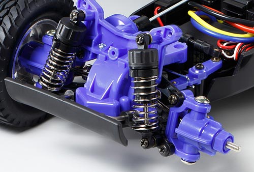 | | Dieses 1:10 R/C Bausatzmodell erinnert stark an einen Truck der SCORE Wüstenrennserie. Die Polycarbonat- Karosserie bildet die dynamischen Formen des Trucks detailgetreu nach und durch die großen Reifen wirkt das Fahrzeug noch realistischer. Das TA02T 4WD Chassis mit zentraler Antriebswelle hat eine Radaufhängung mit doppelten Dreiecksquerlenkern, was großen Spaß sowohl off-road als auch on-road liefert.