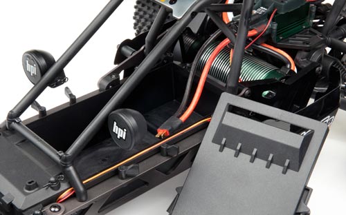 Der 5B Flux ist mit einer großen Akkubox ausgestattet, die sich bequem und einfach ohne Werkzeug öffnen und schließen lässt. Zwei Hardcase 4S LiPo Packs oder ein 8S LiPo Pack finden problemlos Platz in dieser Box. In Kürze werden LiPos von uns erscheinen, die die perfekte Größe für den Baja 5B Flux haben.