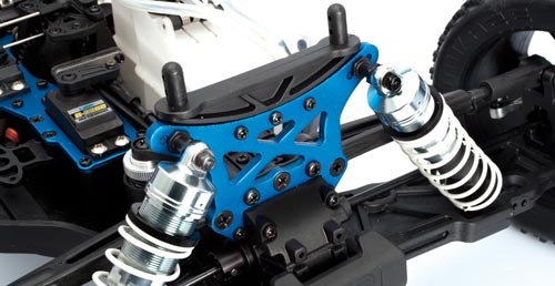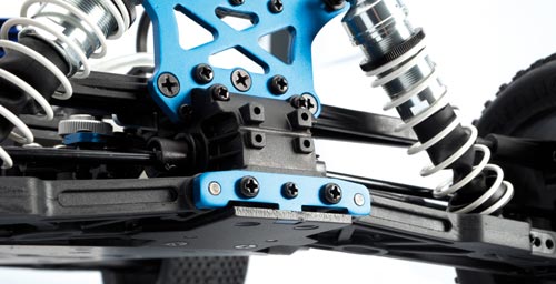 - Extrem robuste, blau eloxierte, 4mm Aluminium Tuning-Dämpferbrücken, vorne und hinten