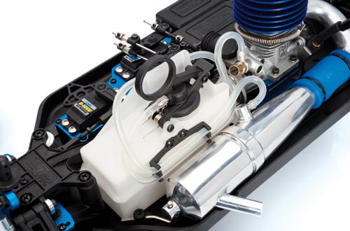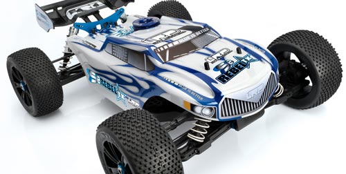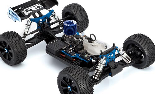 zu schwierig. Ein robuster 4WD Antrieb mit 3 Öl gefüllten Differenzialen sorgt für eine spielfreie Kraftübertragung auf die griffigen Reifen und den unbändigen Vorwärtsdrang des Truggys. Der