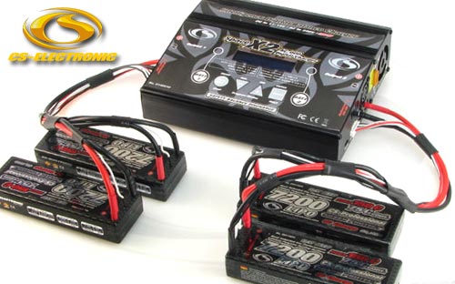 | | Der neu entwickelte CS Space X2 AC-Duo Ladegerät besteht aus 2 unabhängigen Schnellladegeräten mit einem 240V Netzteil. Beide Ladeausgänge laden parallel mit einer Leistung von 2 x 10A und 2 x 100W alle Akkutypen. Für Lithium Akkus wird der Ladevorgang über zwei eingebaute und kalibrierte 2-6S XH-Balancer kontrolliert.