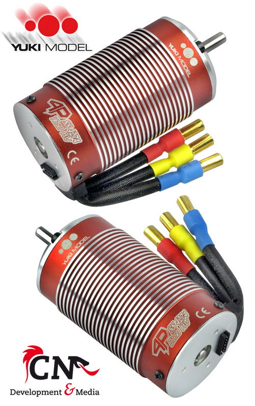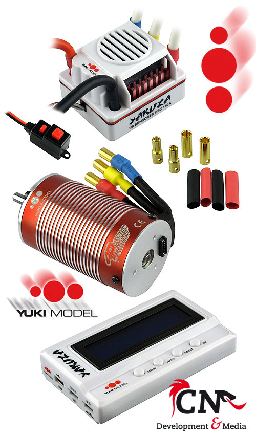 | | Endlich sind sie da: Die 1:8-Brushless Combos von YUKI MODEL! An den Regler YAKUZA 1/8 SD ESC 160A können NiMH-Akkus mit 6-18 Zellen sowie LiPo-Akkus vom Typ 2-6s angeschlossen werden. Der Ausgang des integrierten hochwertigen Schalt-BECs geht bis 3 A bei 6 V. Der gesensorte Regler wiegt 150 g und misst 57 x 49 x 39 mm. Selbstverständlich ist dieser staub- und spritzwassergeschützt. Es werden darüber hinaus drei unterschiedliche Combos angeboten. Die M5-Combo verfügt über einen kurzen 4168er-Motor mit 2.250 U/min/V (KV). Ein großer 4274er-Motor liegt den anderen beiden Sets bei. Hier betragen die spezifischen Drehzahlen der Motoren 2.150 U/min/V in der M6-Combo sowie 1.750 U/min/V in der M7-Combo. Zu allen Combos werden darüber hinaus eine LCD-Programmierkarte, Goldkontaktstecker mit Schrumpfschlauch, ein Sensorkabel und ein passendes Ritzel mitgeliefert.