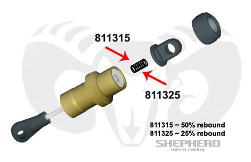 | | Nach ausgiebigem Test hat Team Shepherd eine neue Feder für den Stoßdämpfer- Druckkolben entwickelt. Auf manchen Strecken hat es sich bewährt, mit weniger Rebound zu fahren, speziell wenn viele Unebenheiten zu einem schwierigen Fahrverhalten führen.