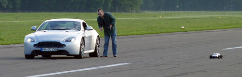 …ach, ja den 517 PS Aston Martin hat der Buggy schon nach wenigen Metern um Längen geschlagen.