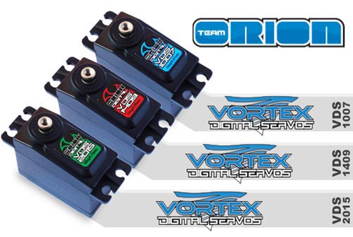 | | Kyosho/Team Orion präsentiert Vortex Digital Servos in drei verschiedenen Modellen. Alle Servos verfügen über ein Metallgetriebe und Kühlkörper aus Aluminium.