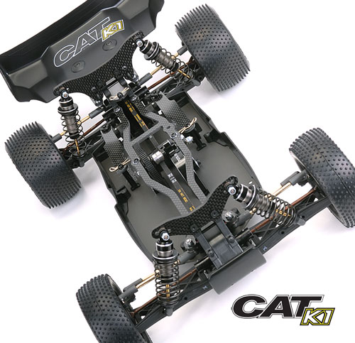 Neu und sehr interessant ist auch die Stoßdämpfer-Kombination welche im K1 zum Einsatz kommen. Statt dicken Big Bore-Dämpfern arbeiten im CAT K1 Small Bore-Dämpfer in Verbindung mit Big-Bore Dämpfer. Die Vorteile dieser Kombination sind ein deutlich geringeres Gewicht der Dämpfer und ein unproblematischeres Verhalten beim Einfedern. Überarbeitet wurde auch die Lenkgeometrie, welche jetzt mit abgedichteten Kugellagern auf der Alu-Chassisplatte verschraubt ist und für eine leichtgängige Funktion im Offroad-Einsatz sorgt.