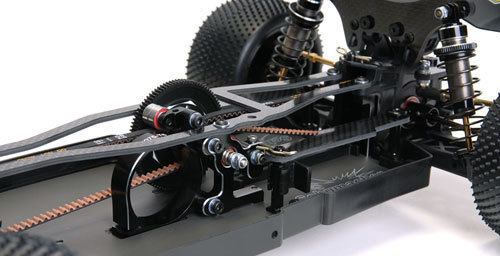 Der neue 4WD-Buggy wir jetzt effizienter über nur noch zwei Riemen angetrieben. Ein neues geschlossenes Alu-Chassis mit seitlich angebrachten Kunststoff-Teilen schließt die Karosserie dicht mit dem Chassis ab und lässt so keinen Dreck ins Innere. Die Cab Forward-Karosserie im Stealth-Look verbessert die Fahreigenschaften bei hohen Kurvengeschwindigkeiten und erhöht die gesamte Balance. Die Akkuhalter nehmen in der 4WD-Klasse gängige 2S LiPo Saddle-Packs im Hardcase sicher auf.