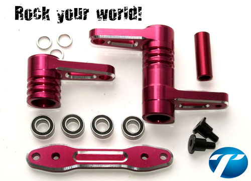 2. Artikelnummer: PD09-0087 THUNDER TIGER „Factory Team“ Tuning Alu „ROCKER ARM“ Dämpfer-Winkel-Umlenker für den „e-MTA“ vorne. Diese Tuning-Alu-Umlenker für die Vorderachse ersetzten direkt die originalen Kunststoff-Teile, sind brutal stabil und setzen die Inboard-Stoßdämpfung noch präziser und direkter in Strecken-Performance um. 4 Präzisions-Kugellager gehören ebenfalls zum Lieferumfang und sorgen für spielfreie Funktion und optimales Ansprech-Verhalten der Öldruck-Stoßdämpfer. UVP: 49,90€