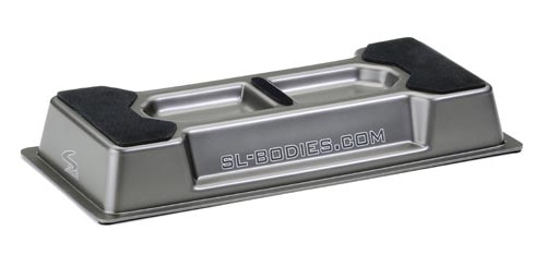 | | SLB erweitert sein Lieferprogramm um ein nützliches Produkt für On - Road RC- Fahrzeuge im Maßstab 1:5, den Carstand 1:5 On-Road. Dieser Montagestand wird aus 3,0 mm starkem schlagfestem Kunststoff im Vakuum- tiefziehverfahren gefertigt. Die anschließende Lackierung in graumetallic verleiht dem Produkt