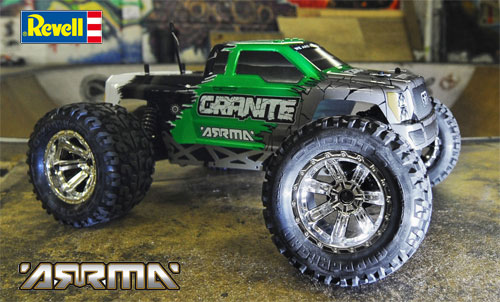 | | Der Granite aus der ARRMA R/C Car Schmiede ist DER 2WD Monster-Truck im Maßstab 1/10. Wie auch die anderen R/C Cars von ARRMA, wird der GRANITE als RTR Version geliefert. Die spezielle Monster Truck Karosserie ist auf einem TVP-Chassis aufgebaut, welches nicht nur cool aussieht, sondern dem Truck die perfekte und robuste Konstruktion gibt.
