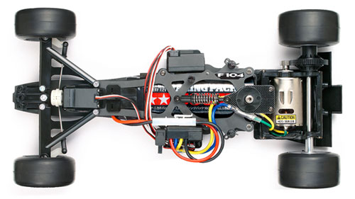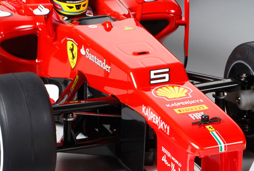 | | Der TAMIYA Ferrari F2012 Bausatz auf dem F104 2WD Chassis mit Elektroantrieb ist der Blickfang. Die unverwechselbare Form der Karosserie, einschließlich der komplexen Front- und Heckflügel, wurde exakt nachgebildet, zusätzlich kann man zwischen zwei verschiedenen Seitenpontons wählen und eine Fahrerfigur ist ebenfalls enthalten. Für eine perfekte Balance sorgt der längs positionierte Fahrakku.