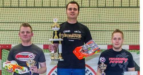 Auch in der Klasse EB waren die Fronten schnell gezogen. Moritz Hilbert war mit Abstand der schnellste und konstanteste. Ihn zu schlagen war das Ziel. Doch viele der Konkurrenten hatten Probleme, das Auto auf diese Strecke abzustimmen. Nach dem Training war deshalb nicht klar, wer in der Lage sein würde, Moritz zu schlagen. In den Vorläufen war dann zu erkennen, das Robert Klier, Sven Stoffels, Johannes Anton Sperr und Karsten Hartinger immer besser in Fahrt kamen. Doch Moritz hatte stets eine Antwort und konnte somit alle Vorläufe souverän gewinnen und holte sich den TQ. Die Startreihenfolge zum Finale lautete: 1. Moritz Hilbert, 2. Johannes Anton Sperr und 3. Robert Klier.
