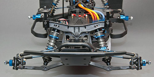 • Renn-optimierte „Gull-Wing“ Front-Querlenker & Updated Dämpfer-Brücken, optimiert für den Einsatz der 12mm „Big Bore“ Dämpfer
