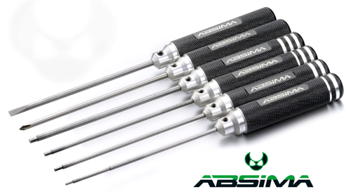 Absima presented with the six-piece screws and allen wrench set the ultimate tool for every modeller. Due to the corrugated surface of the tool handles are very good in the hand and prevent a slight slipping off.