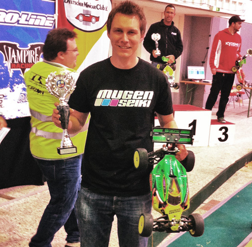 Im Halbfinale B konnte sich Dirk Jakels als erster durchsetzen. Beim Beobachten seines MUGEN MBX-6 ECO fiel mir die geringe Bodenfreiheit auf und kurz vor meinem Halbfinale habe ich meinen MUGEN MBX 6 ECO dann auch noch eine etwas geringere Bodenfreiheit spendiert. Im darauffolgenden Halbfinale B konnte ich mich vor Björn Siewert und Julian Heitjan als erster durchsetzen und durch eine gute Zeit im Finale von der Pole Position und damit vor Dirk Jakels starten. Dominik Röhrig „Dompe“ konnte sich mit seinem MUGEN MBX-6 ECO durch eine beherzte Fahrweise sogar vom Viertelfinale bis ins Finale vorkämpfen.