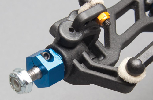 • Rennoptimierte „Gull-Wing“ Front-Querlenker & Updated Dämpfer-Brücken, optimiert für den Einsatz der 12mm „Big Bore“ Dämpfer