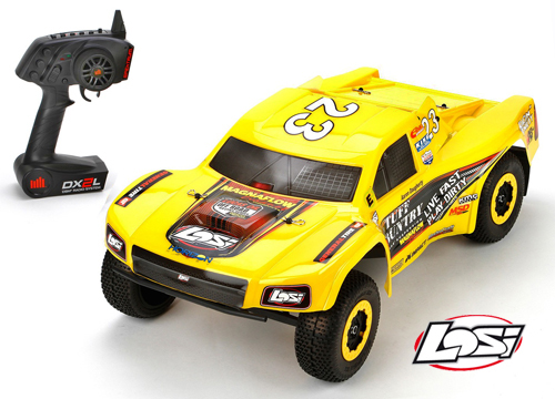 Lieferumfang: Brushless Short Course Truck mit wasserfester Elektronik inkl. LiPo-Akku, Netzladegerät und 2.4GHz Spektrum DX2L Fernsteuerung