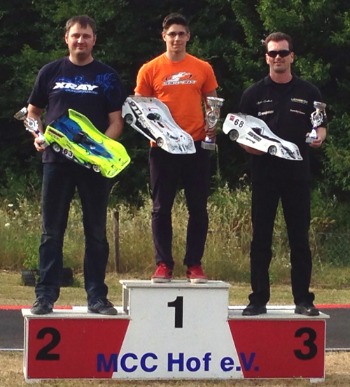 In der Klasse 1:10 Scale war Dominic Greiner nach den Vorläufen auf Platz 1. Das Halbfinale gewann er vor Michael Heinrich und Ralf Krause. Er hatte damit die Pole. Das Finale gewann er ebenfalls vor Michael Heinrich und Ralf Krause.