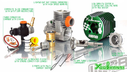 Dementsprechend robust fällt das mit außermittig laufenden Keramikkugeln ausgestattete hintere Hauptlager des Motors aus, das sehr lange Standzeiten bietet. Abgerundet wird die mustergültige Ausstattung der RB Yuichi Kanai Edition durch einen extrem leichten, CNC- gefrästen Kolben, ein Hochleistungspleuel und ein vorderes Kurbelwellenlager mit spezieller Staubschutzdichtung, wodurch dieser Motor zur ersten Wahl für jeden ambitionieren Buggy oder Truggy Piloten avanciert.