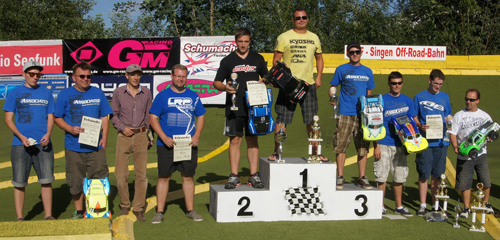 In den Finalen ließ Kim Sitensky nichts anbrennen und gewann bereits nach dem 2ten Finale den deutschen Meistertitel Monster. 2ter wurde Swen Lauber, gefolgt von seinem Vereinskollegen Dirk Endres. Knapp am Trepperl vorbei konnte sich ThunderTiger Teamfahrer Stefan Knott als einzigster Heckmotor-Fahrer im A-Finale den 4ten Platz erfahren. Florian Eberhard fiel leider durch technische Probleme auf den 10ten Platz zurück.