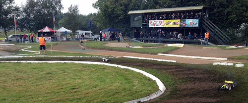 | | Vom 13. bis 15. September 2013 fand in Bistensee also Schleswig-Holstein die offene Europameisterschaft 40+ in der Klasse 1:8 OffRoad statt. Für mich war dies eine willkommene Abwechslung zum NRW-Cup und eine schöne Gelegenheit auch mal internationale Rennatmosphäre zu schnuppern. Neben einer großen Anzahl deutscher Fahrer waren Teams aus Österreich, Frankreich, Großbritannien, Dänemark, Norwegen, Schweden und der Schweiz am Start.