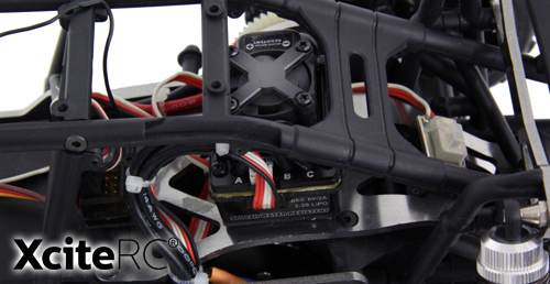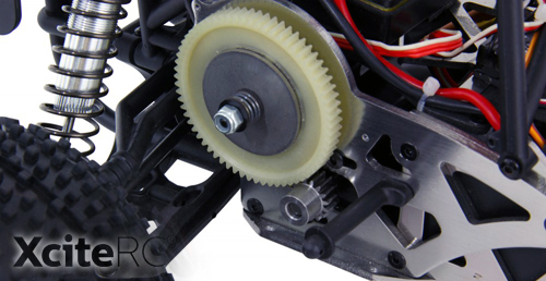 Für einen perfekten Leichtlauf sorgen die serienmäßigen Kugellager, stabile Metall-Antriebswellen gewährleisten eine verlustarme Kraftübertragung auf die Hinterräder. Ein einstellbarer Slipper schützt das Kegeldiff vor Überlastung. Dank des präzise montierten Modells heißt es jetzt nur noch den Lipo Akku von unten durch das Chassis in das Modell schieben, Fernsteuerung an, Auto an und los geht es.