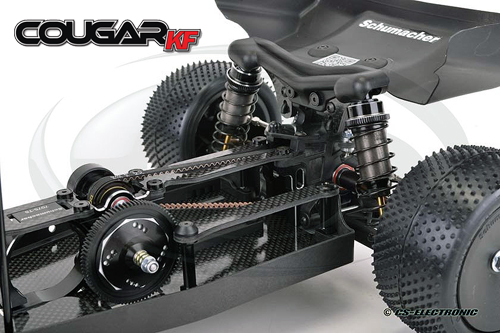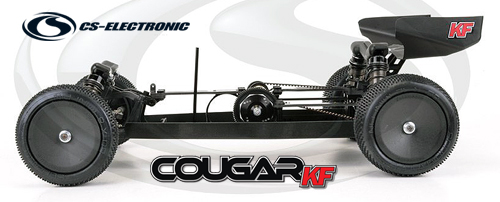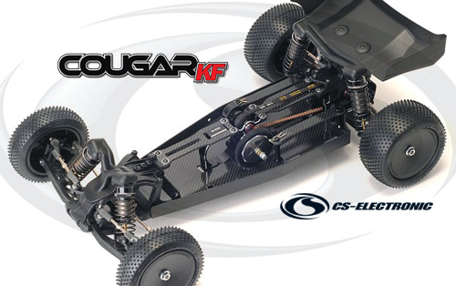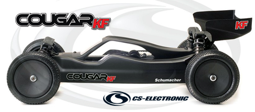 | | CS Electronic präsentiert mit dem Cougar KF den brandneuen 2WD Wettbewerbsbuggy mit Mittelmotor aus dem Hause Schumacher Racing. Der neue Cougar KF ist speziell für griffige Teppich,- und Astro-Strecken designt.