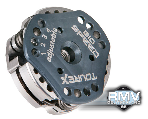 | | Motiviert durch die Erfolgsgeschichte im 1:8 Offroad-Bereich mit der Speed 2.5 Rennkupplung, 7 mal Deutscher Meister sowie Truggy Extended, 2 mal Deutscher Meister hat sich RMV Deutschland dazu entschieden sein Sortiment durch die neuen Tourex Big-Speed Performance Kupplung zu erweitern. Wettbewerbsprofis sowie ambitionierte Racer von Großmodellen kommen an diesem Produkt nicht vorbei. Diese einstellbare Tourex Big-Speed ist der Hingucker unter den Rennkupplungen, auf den ersten Blick zwar eine normale Dreistiftkupplung, die aber durch Design, System und Optimierung der Federn und Beläge sich doch von herkömmlichen Kupplungen unterscheidet. Mit einzigartigen Carbonbelägen äußerst druckstabil, extrem haltbar und wartungsarm. Vorteile, die auch bei erhöhter Beanspruchung von großem Nutzen sind. Diese einstellbare Big-Speed Performance Kupplung ist geeignet für sämtliche Großmodelle, außer Lauterbacher L3 Super-Sprint und Formel 1 Fahrzeugen!