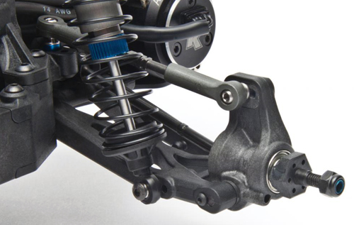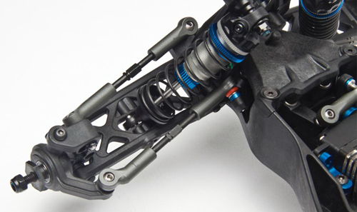 • Komplett neues Vorderachs-Fahrwerk inklusive extrem stabil ausgelegten Lenk-Hebeln & Radachs-Trägern in einem neuen Design, bei dem einfach mittels unterschiedlichen Einsätzen die Geometrie verändert werden kann.