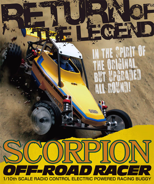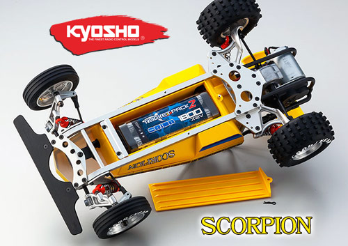 | | Mit dem legendären Scorpion brachte KYOSHO den ersten wirklich realistisch aussehenden R/C Buggy auf den Markt, der eine renntaugliche Performance auf der Strecke bereitstellte. Auch 30 Jahre nach seiner ursprünglichen Erscheinung im Jahr 1982, ist der Scorpion immer noch bei Enthusiasten weltweit sehr beliebt und gehört zu einem von Sammlern meist gesuchten Modellen. Durch die Kombination aus dem unverkennbaren Look des Originals mit modernen Features und Neuerungen, ist der Scorpion 2014 noch stärker, haltbarer und bietet eine bessere Performance als das originale Modell.