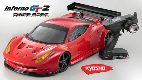 Der Inferno GT2 wird als ReadySet mit dem neuen 2,4GHz Syncro KT-201 Fernsteuersystem geliefert. Im Modell sitzen zwei Hochleistungsservos, sowie der KR-200 Empfänger. Die Karosserie ist fertig ausgeschnitten, lackiert und mit dem Dekorbogen beklebt. Wie ein Juwel funkelt die Optik des GT2, wenn er aus seiner Verpackung entsteigt.