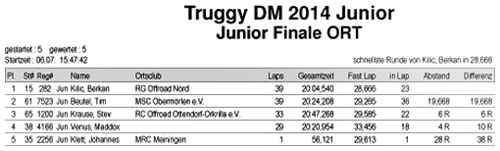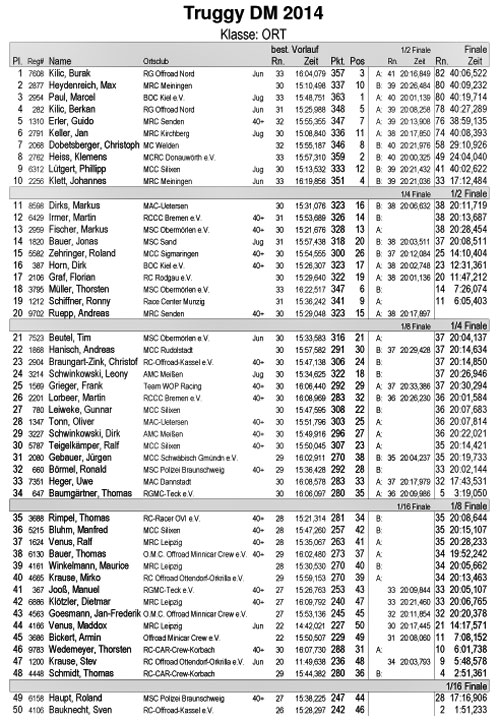 | | Vom Team „TEAM ASSOCIATED DEUTSCHLAND“ waren die Fahrer Christoph Dobetsberger und Max Heydenreich am Start. Beide Fahrer waren in der Verbrennerklasse mit einem Team Associated RC 8T CE unterwegs. Max startet noch zusätzlich in der Elektroklasse. Gesamt waren 50 Verbrenner- und 12 Elektrotruggys am Start.