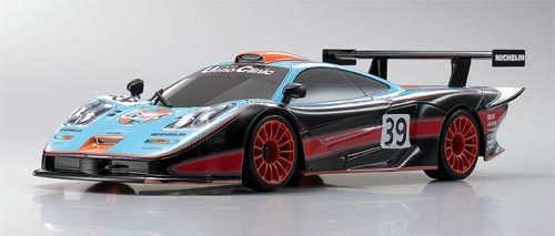 | | Die Mini-Z MR-02 McLaren F1 GTR von Kyosho werden als ReadySet mit Perfex-Fernsteuersystem geliefert. Die Karosserien sind bereits fertig lackiert und mit sämtlichen Dekors beklebt.