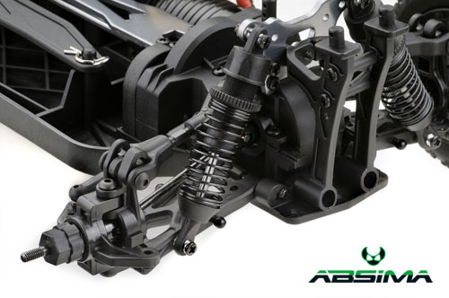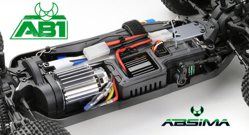 Immediately striking is the extremely robust construction of the AB1 chassis. The upper deck (Chassis stiffening middle), as well as the shock towers front and rear, are made of aluminum. All plastic parts are made extra strong and have the necessary flex. The reliable 4WD drivetrain is well prepared for difficult ground and the whole model is equipped with ball bearings.