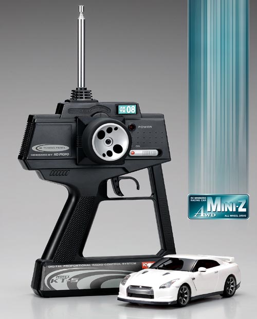 | | Die Mini-Z Nissan GT-R gehört zur AWD-Serie und verfügt über einen permanenten Allradantrieb. Die Abkürzung AWD steht für All Wheel Drive. Der Racer wird fahrfertig mit einer Perfex-Fernsteuerung und mit zwei verschiedenen Karosserien geliefert.