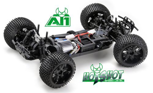 May it be a bit more? With the AT1 finally you get what you wish for. A high quality and robust model sport - beginners - race truck in 1:10 scale. All-wheel drive, it manages your AT1 up to 40 KM/H. Thereby help a waterproof40A speed controller and a 15 turns brushed motor. Water resistant is also the powerful steering servo. The muscular appearance of the AT1 enhances the aggressive designed Bulldog body. In addition, the AT1 pushes it to the top; All-In means, a NiMH battery and charger are included with your AT1. Your AT1 is waiting for you