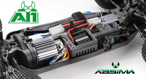 Immediately striking is the extremely robust construction of the AT1 chassis. The upper deck (Chassis stiffening middle), as well as the shock towers front and rear, are made of aluminum. All plastic parts are made extra strong and have the necessary flex. The reliable 4WD drivetrain is well prepared for difficult ground and the whole model is equipped with ball bearings.