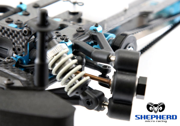 | | Shepherd Micro Racing präsentiert den Velox V10 "PRO" in der 2015ner Version. Das Modell ist mit der bisher optionalen "Team Edition" Chassisplatte ausgerüstet, die aus hochwertigem 7075 T6 Aluminium in Deutschland gefertigt wird und über eine zusätzliche Flachsenkung verfügt, die den mittleren Lagerbock vor Verdrehung schütz und dafür sorgt, das die Riemenräder immer optimal in der Flucht sind. Auch die optionalen Radioplattenhalter aus Aluminium sind ab sofort im Baukasten enthalten und sorgen für eine erhöhte Steifigkeit und gleichzeitig einen geringeren Verschleiß der Radioplatte. Als weiteres Tuningteil ist die hohlgebohrte Getriebewelle nun Standard und spart ca. 30% Gewicht gegenüber der Standardwelle wodurch die rotierende Masse signifikant verringert wird und die Beschleunigung sich verbessert.
