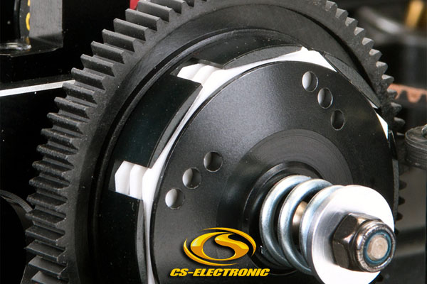 An zwei Positionen, die 21mm weit auseinander liegen, kann die Motorhalterung befestigt werden. So kann der Griff an den Achsen an die Streckenbeschaffenheit angepasst werden. Alle dazu benötigten Bauteile (Topdeck, Riemen) liegen bei. Auch an den Stoßdämpfern hat Schumacher Hand angelegt. Die 13mm Big Bore Dämpfer kommen mit CNC gefrästen Kolbenplatten (1,5mm vorne/1,6mm hinten) und Titannitridbeschichteten Kolbenstangen.