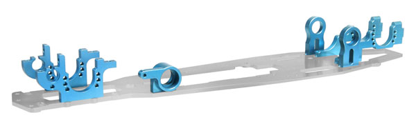 Auch die bisher optionalen erhältliche # Team Edition # Chassisplatte ist im Baukasten enthalten. Aus hochwertigem Flugzeug-Aluminium gefertigt verfügt die Chassisplatte über eine zusätzliche Flachsenkung im Vergleich zum Vorgängermodell, die den mittleren Lagerbock vor Verdrehung schütz und dafür sorgt, dass die Riemenräder immer optimal in der Flucht sind. Durch die Verwendung von blau eloxierten 7075 T6 Aluminium Lagerböcken ist der Antriebsstrang extrem effizient und unempfindlich gegenüber Temperaturschwankungen, was den Rollwiderstand erheblich senkt.
