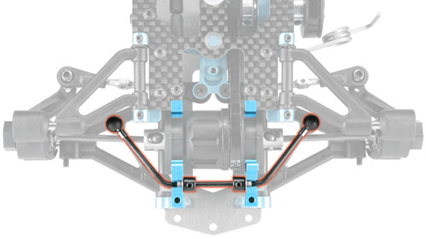 In den aus hochwertigem Kunststoff gefertigten vorderen und hinteren Querlenkern kommen kleine Pivotballs für die Stabi-Anlenkung zum Einsatz. Damit lässt sich die Länge der Stabianlenkung schnell und einfach stufenlos einstellen.