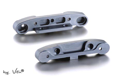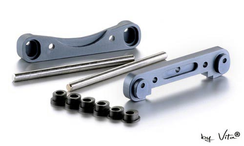 | | Äußerst prägnante und wichtige Punkte am Fahrwerk eines RC-Car Buggys sind die Krafteinleitpunkte der Querlenker am Chassis, die die Drehachsen der Fahrwerksschwingen aufnehmen. Dafür werden seitens der Industrie gewöhnlich Kunststoffplatinen gefertigt, die in gewissen Grenzen diese Funktion erfüllen können, aber sehr häufig aufgrund des Materials gestresst und überbeansprucht werden. Als Konsequenz wirkt auf der einen Seite das Fahrverhalten schwammig und unkontrollierbar, auf der anderen Seite können Bruch oder Abriss das Fahrvergnügen erheblich schmälern.