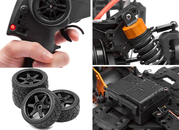 Der RTR Sprint 2 Flux ist ab sofort wasserdicht und kann bei nassen Konditionen, wie Regen, Schnee und Matsch eingesetzt werden. Der 2,4GHz Empfänger wird zuverlässig von einer wasserdichten Empfängerbox geschützt, sodass eine sichere Funkverbindung zu jeder Zeit gewährleistet ist! Ein wasserdichtes SF-10W Lenkservo und ein wasserdichter Flux Vapor Fahrtenregler komplettieren das Paket! Bitte beachten: die Elektronik ist nicht für Unterwasserfahrten geeignet. Entfernen Sie Dreck oder Salzwasser unverzüglich mit reinem sauberen Wasser nach der Fahrt. Überprüfen Sie die Empfängerbox auf Trockenheit von innen und lassen Sie alles trocknen, bevor Sie wieder fahren.