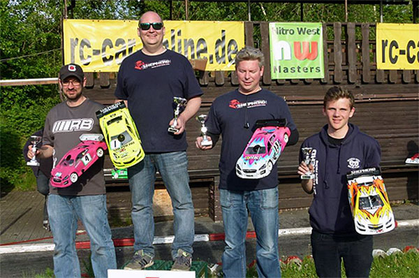 | | Am vergangenen Wochenende fand der Auftakt zum Nitro West Masters 2015 auf der Strecke des MRC Oberhausen statt. Das Team Shepherd West präsentierte sich in exzellenter Verfassung und konnte spezielle in der Klasse 1/10 On-Road glänzen.