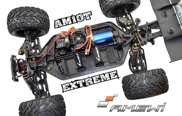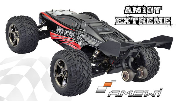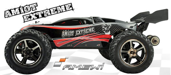 | | AM10T Extreme- mehr Leistung geht nicht! Als Antrieb dient einer der schnellsten 1:8er Motoren(2650KV) mit einem 120A Regler. Ein Dampfhammer auf einem leichten Chassis. Der 4-Zellen Antrieb eines 1:8ers in einem 1:10 Fahrzeug setzt neue Maßstäbe in Sachen brutaler Leistungsentfaltung und katapultiert den AMTX mit atemberaubenden Wheelies nach vorn und zaubert dabei allen Speedfreaks ein breites Grinsen ins Gesicht. Dieser außergewöhnliche Truggy basiert auf der Grundlage von professionellen Wettbewerbsfahrzeugen. Ausschließlich erstklassige Komponenten und Bauteile hoher Materialgüte wurden verwendet.