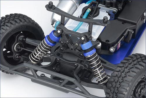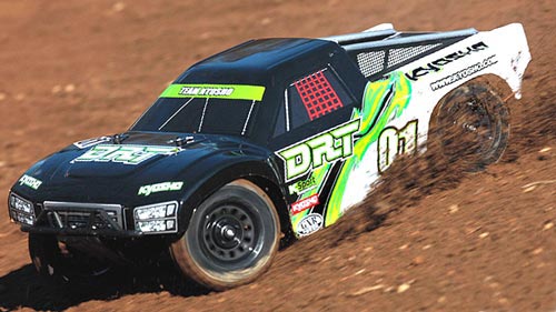 | | Kyosho’s Frontal-Angriff auf die 1/10 4WD Desert Racing Truck Szene heißt DRT! In diesem Boliden steckt die Erfahrung aus sieben WM-Titeln im OffRoad-Bereich. Maximale Performance im Gelände war die oberste Maxime bei der Entwicklung dieses neuen Dampfhammers. Dabei herausgekommen ist ein wahres Geschoss, mit bärenstarker Leistung in der bekannten ReadySet-Qualität.