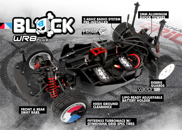 | | Die unglaubliche "Digital Zebra" Version des aktuellsten Ken Block Gymkhana GRiD Ford Fiesta ST RX43 Racers ist ab sofort als Maßstab 1:8 WR8 Flux Version erhältlich! Die HPI Flux Power ermöglicht es Ken´s Replika aus dem stehenden Start im Nu in atemberaubende GRiD Action mit 100+km/h (60+ mph) zu katapultieren. All das mit einem leichten Zug am Gashebel - die perfekte Möglichkeit, um mit Freunden Ken´s epische Performance zu kopieren!