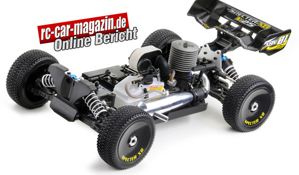 | | Dem vor kurzem vorgestellten Brushless Buggy Specter X8 EB steht selbstverständlich auch die entsprechende Nitro Variante zur Seite, nämlich der auf dem X8 N Chassis basierende Verbrenner Buggy Specter V25.
