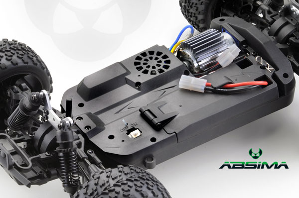 Ein großer Vorteil vom ASB1 ist das komplett abgedeckte Chassis. Dadurch ist es kaum möglich das Steine, Dreck etc. in das Fahrzeug eindringen können. Lediglich der Motor liegt frei damit dieser genug Kühlung erhält. Der Überrollkäfig bietet zu dem noch Schutz falls es zu heftigen Überschlägen kommen sollte.