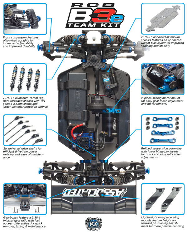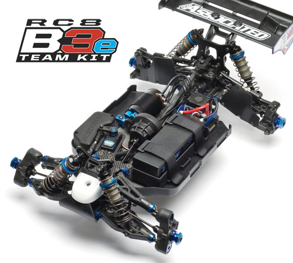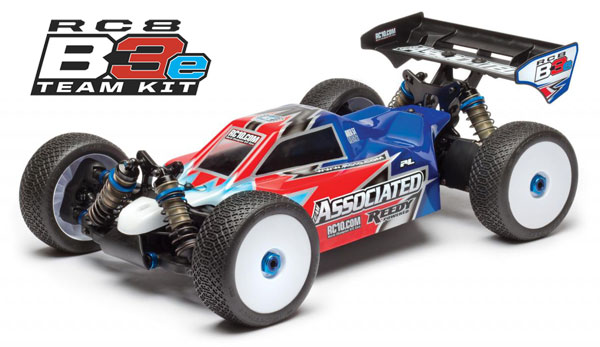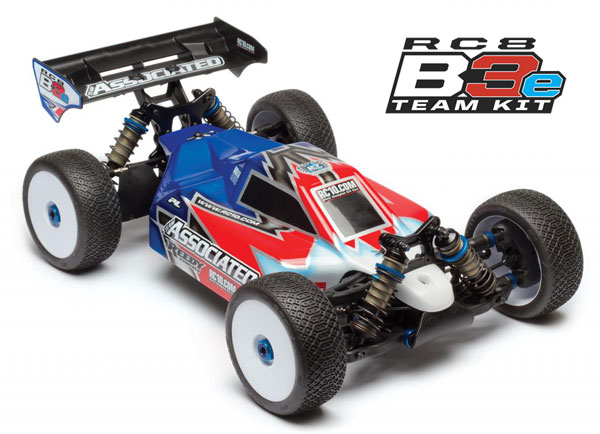 | | Thunder Tiger präsentiert mit dem Team Associated RC8B3e 1:8 Elektro 4WD Wettbewerbs-Buggy als Team Kit Baukasten Version die Waffe des 27-fachen Weltmeisters für die Elektro-Königs Klasse des R/C Car Motorsports.
